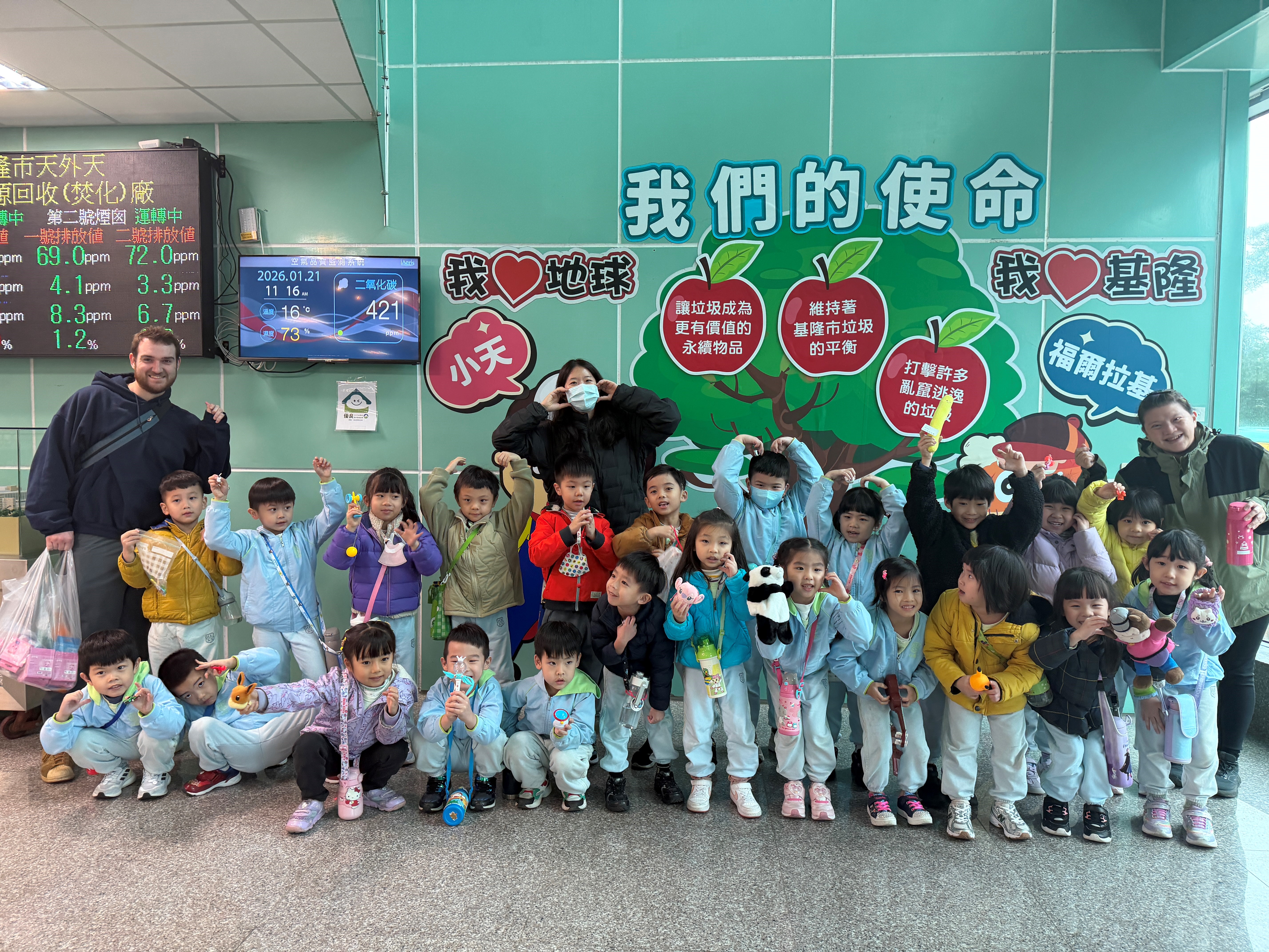 基隆市何嘉仁幼兒園蒞廠進行環境教育課程,來訪學員透過ECOVE環教同仁詳細、專業的解說,學習到垃圾處理、焚化發電原理等知識,學員們表示會將垃圾減量、資源永續的觀念帶回日常生活中實踐,也謝謝ECOVE團隊讓他們有不同的環境教育